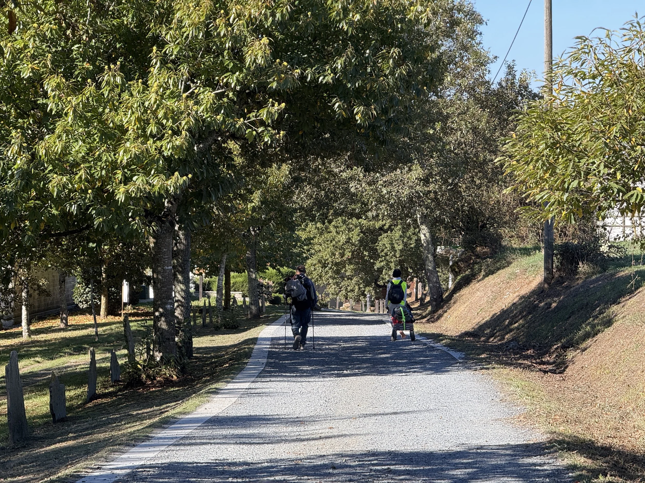We stopped for breakfast around 10:00am at a small cafe called Bar Trisquel in Monterroso. The owner greeted us warmly as we settled at our table. I can’t tell you how excited I was to find multiple vegetarian options on the menu that were not Spanish Omelette or bread and cheese. Now, don’t get me wrong, I love Spanish bread and cheese and most cafes also serve very good tortillas, but after three plus weeks of eating them for breakfast I was dying for a change. I had a toasted vegetable sandwich with lettuce, tomato, onion and asparagus plus a cafe con leche(coffee with steamed milk) and a cafe solo (basically an expresso which I add to the other to make it a bit stronger). It all tasted so good, I ordered another round of all three. The owner found my request a bit surprising - to the point she confirmed it with Olga in Spanish to make sure she understood. I had no problem finishing off the seconds! Happy stomach 🤣. It’s amazing how much I ate each day during our walks, and still managed to drop nearly two waist sizes over the four plus weeks. Thank heaven I have an adjustable belt.