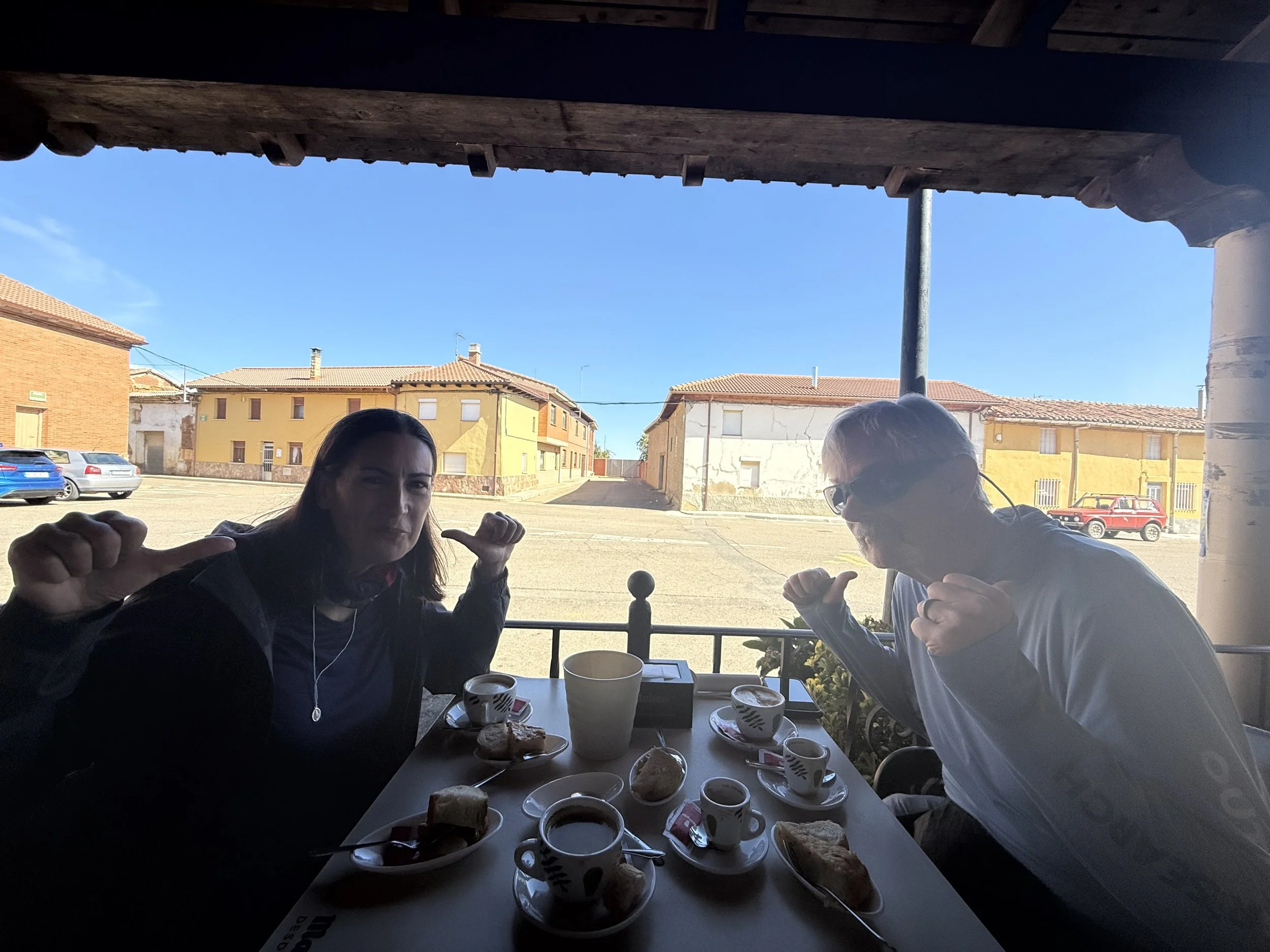We stopped at a town 2.5 miles from our destination to have a coffee and Olga asked if there was a taxi available for me. The ladies behind the counter said they can call one but it will probably cost 30 Euros. Before I could even make a decision one of those ladies came over and said she would drive me for free. So, she drove the 2.5 miles down the road and when I tried to pay her 10 Euros she refused heartily and only when I said if you don’t want it you can give it to someone else did she acquiesce. I asked her name and it is Christina. I called her Angel Christina and thanked her profusely. Now just waiting for my compadres the best way I know how!