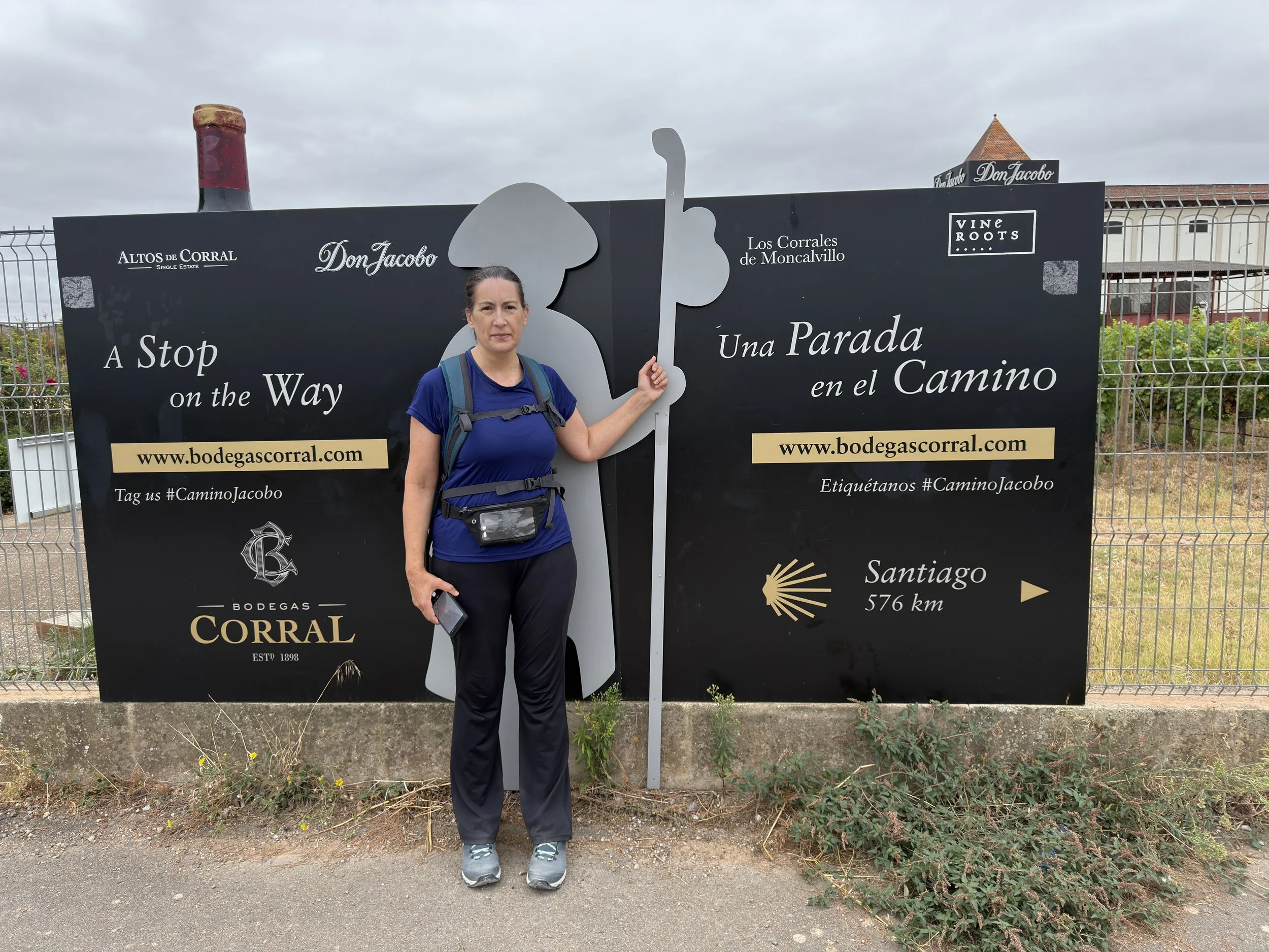 The remainder of the day was spent walking next to roads and highways or through vineyards. We stopped to rest in Navarette and got our first pilgrim stamp of the day at the church.