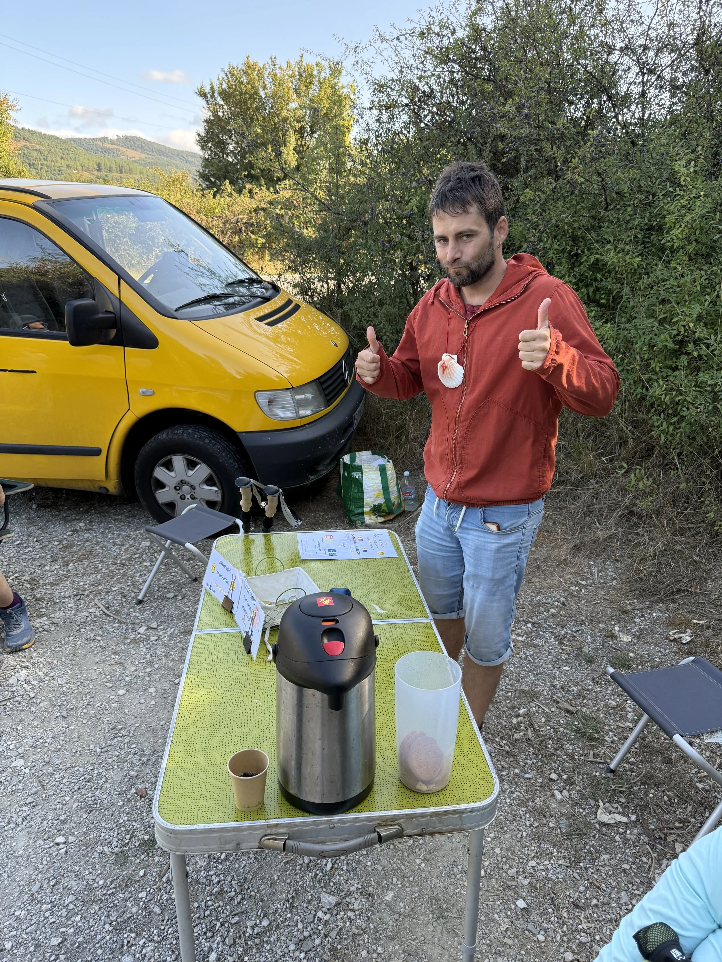 We walked about half a mile with these little furry angels. It turns the woman with the van is a dog walker/ trainer. I am 100 % certain that Mom sent these angels my way to reassure me that I could keep going. Not to mention that there was also a lovely man setup with a little coffee and biscuit stand out of his van.